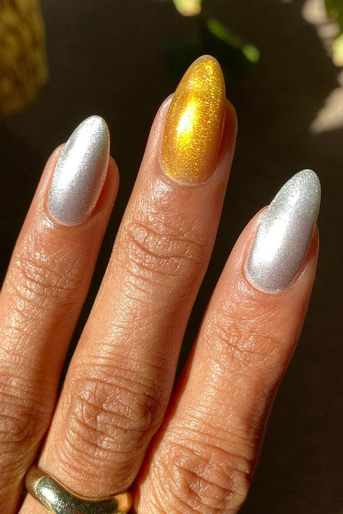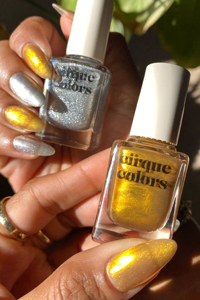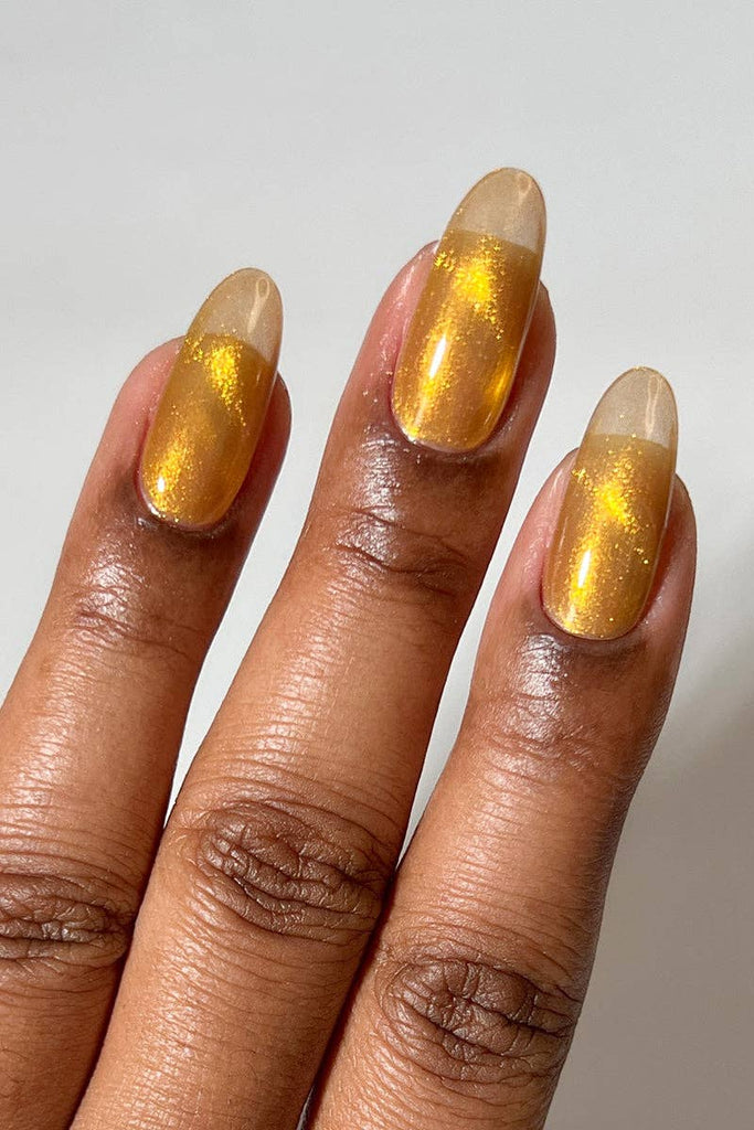 Embody the essence of precious metals and transform your nails into gilded masterpieces. This seemingly magical elixir reinvents ordinary nails, transcending the mundane into the extraordinary. Unveil the precious allure of gold on your fingertips, as if dipped in molten metal. Alchemy makes for the perfect gold polish to compliment your favorite gold rings and accessories.