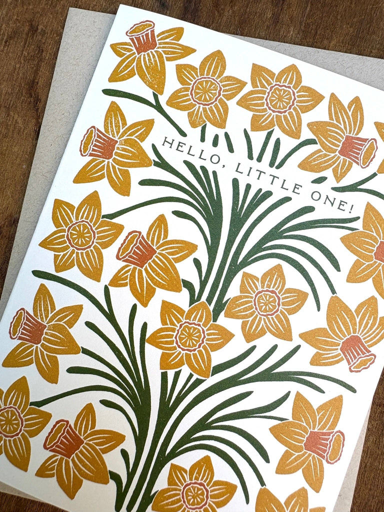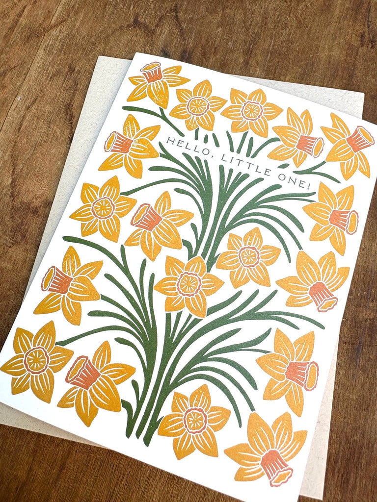 For her offset printed cards, Katharine begins each greeting card design with a sketch, watercolor painting or hand-carved linoleum block, which is digitally translated and later, individually printed by our printing partners.
