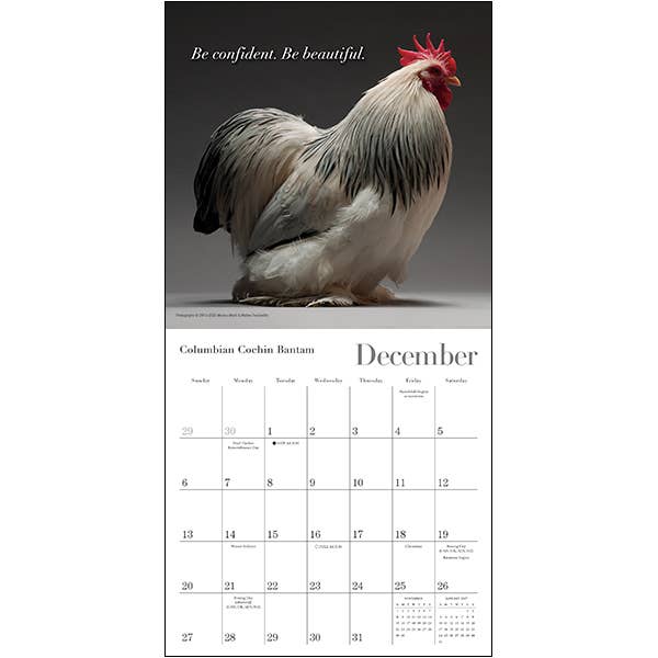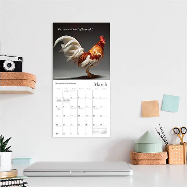 Chickens can be beautiful and glamorous, as Italian photographers Moreno Monti and Matteo Tranchellini have so delightfully shown. They took portraits of these feathered guys and gals, capturing their natural beauty as they posed and strutted like any fashion model. Now available in the mini format, we’ve featured some of the most gorgeous avian glamour shots from their book CHICken in this calendar.