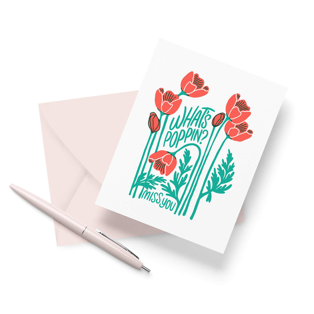 Sometimes the reason to send a card is that the card is cute! Being thoughtful never goes out of style. You can share your life updates and send a written hug with this everyday greeting card. Go on, they deserve it! Blank inside so you can make an impression. • Letterpress printed on thick cotton paper from an original hand lettered illustration. • A2 4.25 inches x 5.5 inches. • Comes packaged in a cello sleeve with a coordinating envelope.