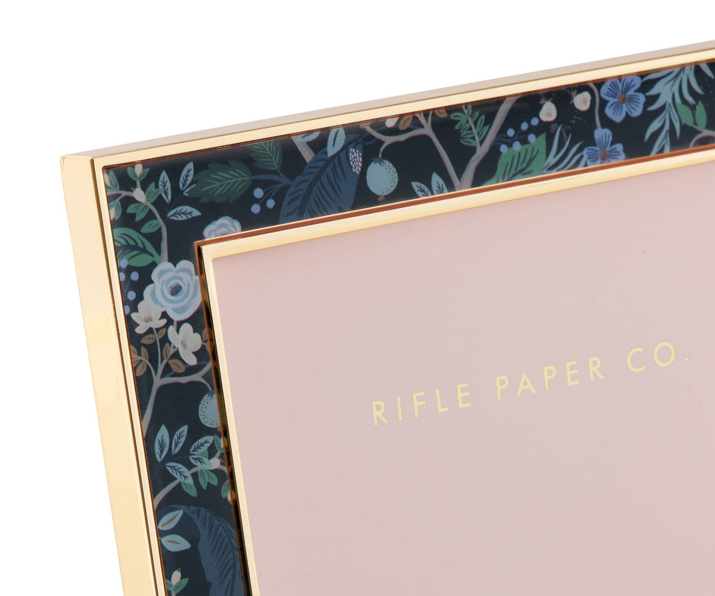 In a floral frame of mind. This Peacock illustrated picture frame features gold accents and an evergreen velvet backing with a kickstand for display. The frame holds a standard 4x6 photo.