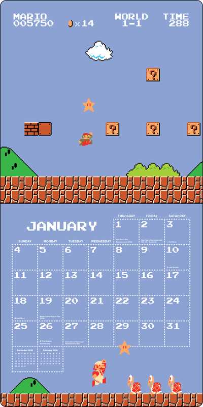 Super Mario Bros. 8-Bit Retro 2026 Wall Calendar