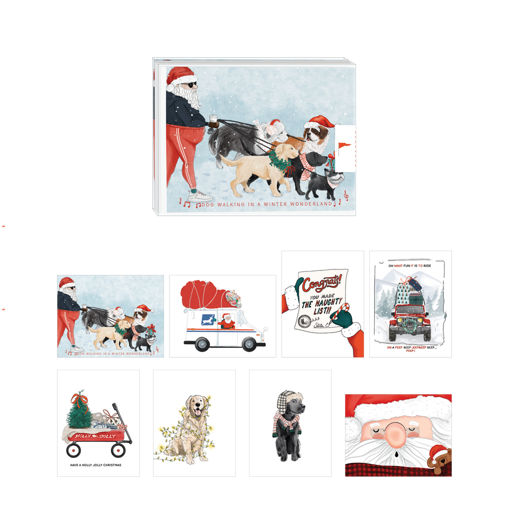 Santa & Dogs Holiday Card Set of 8 (Assorted