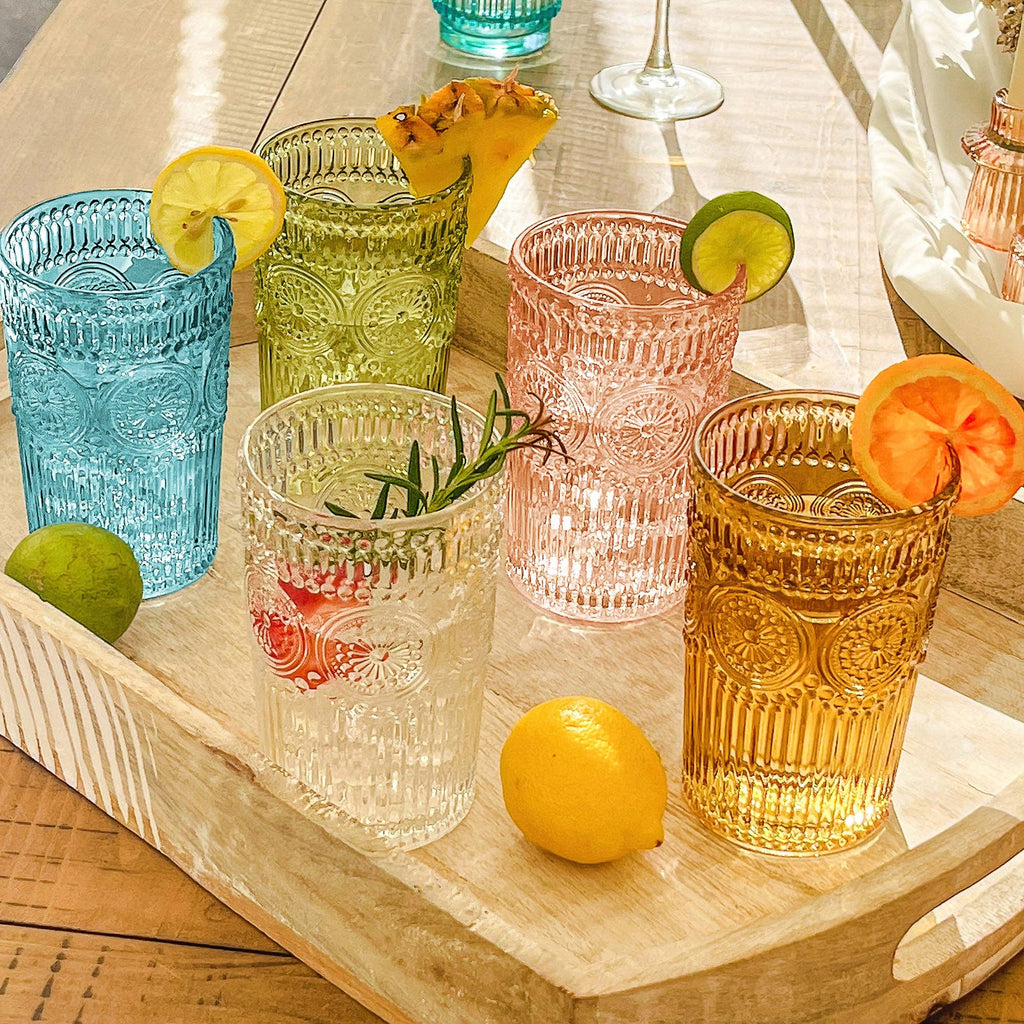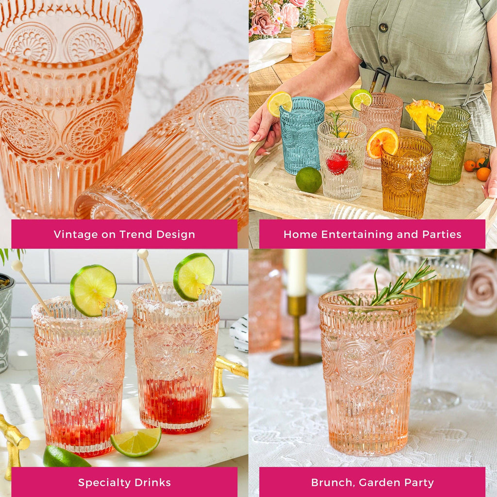 Eating dinner or drinking a cocktail doesn't have to be boring anymore. You do not only have to put out red plastic cups or paper cups at parties. Elevate your drinkware like you elevated your clothing style with our 13 oz. Vintage Textured Rose Gold Drinkware (Set of 6.) There is no way you will not enjoy your drink when using these vintage ribbed drinking glasses. We combined the hobnail design with grooves around the base that highlight the classic circular design. The design goes all around the glass and with the gold-hued pink drinking glass there are no two looks of this beauty. The way light shines through the glass makes it look as if it is illuminated making it appear more like an art piece than just a ribbed drinking cup.