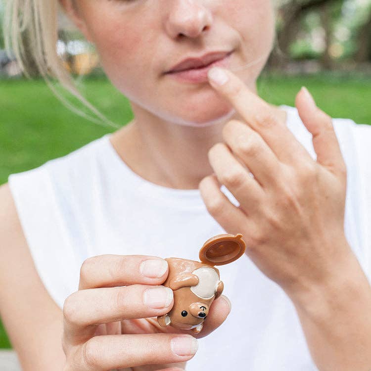 Cherry and Strawberry flavored. Material: PP, resin, lip gloss. Product: 1.5" x 1.6" x 1.25"