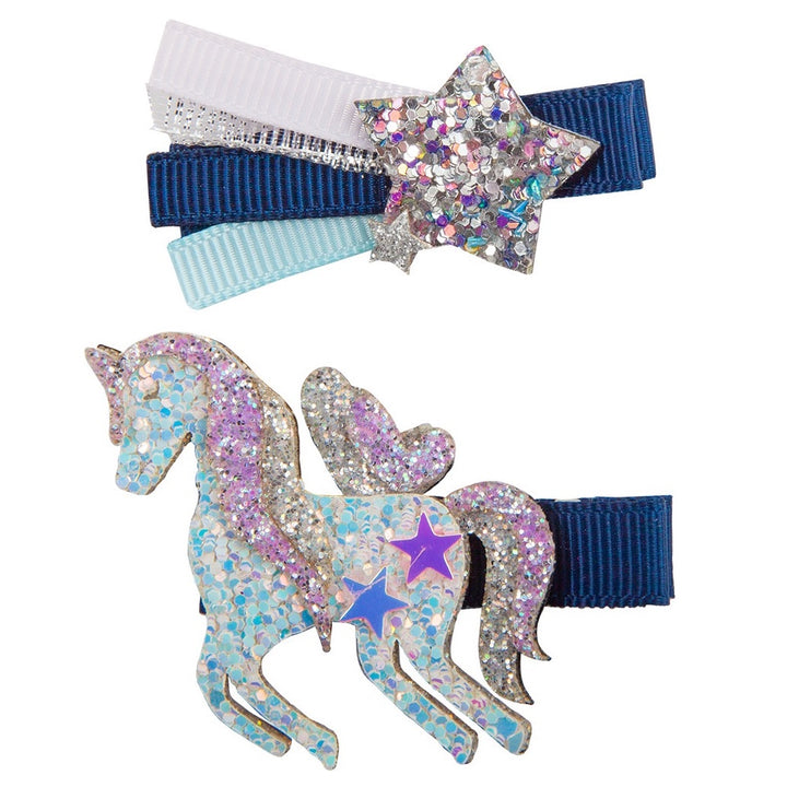 Boutique Navy Unicorn Star Hair Clips, set of 2