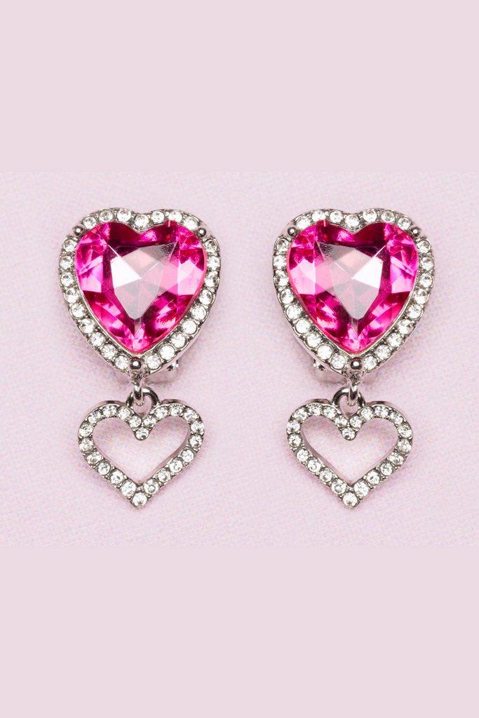 Boutique Heart Jewel Clip On Earrings
