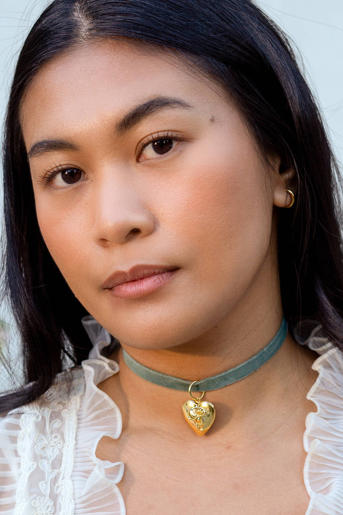 * velvet ribbon available in black, sage, blush, amber or ruby