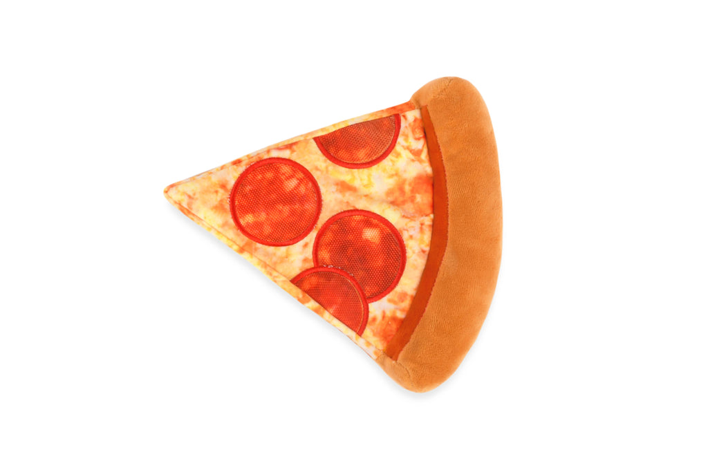 Bring the flavor of fun to playtime with P.L.A.Y.'s Snack Attack Puppy-roni Pizza toy! This slice of joy features three squeakers for maximum excitement and a t-shirt rope hidden in the crust to mimic the dough-like texture. It’s a mouthwatering toy that guarantees tail-wagging joy!