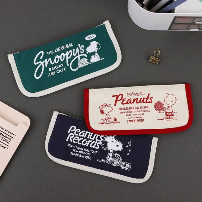 Peanuts Snoopy 75th Anniversary Slim Pen Pouch: Green