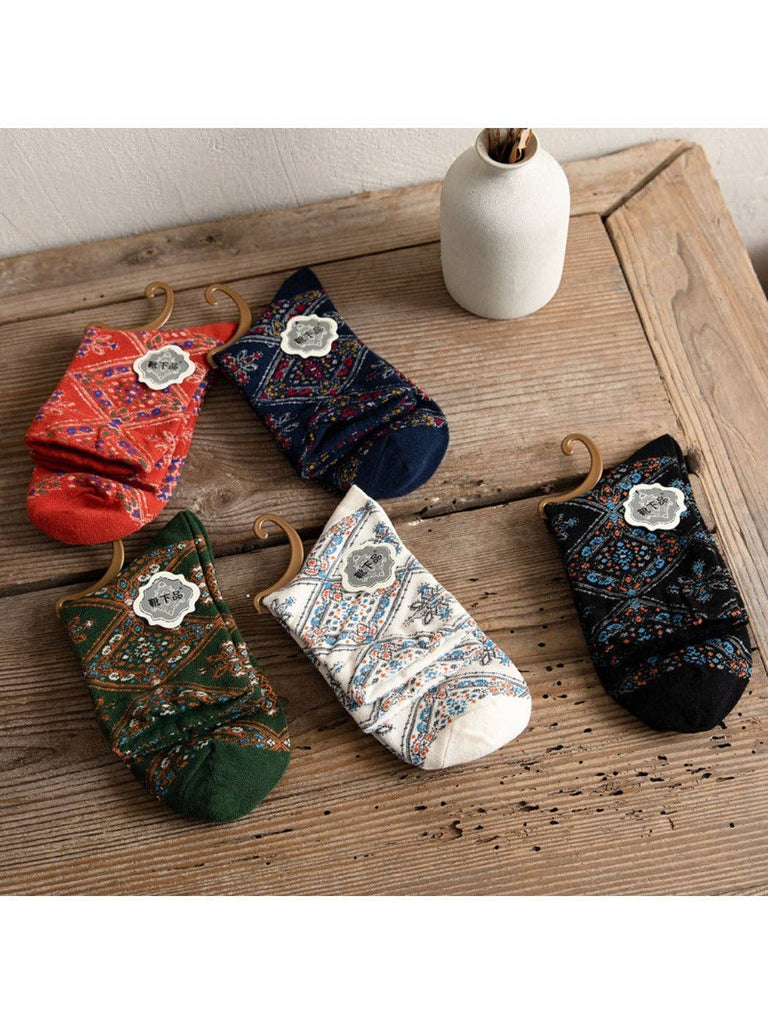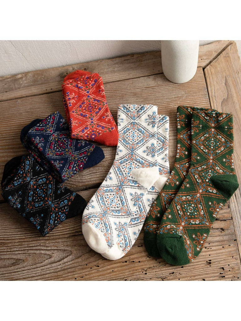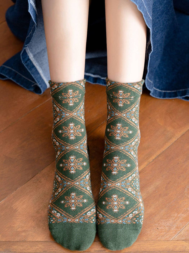 Retro Diamond Floral Socks: Green
